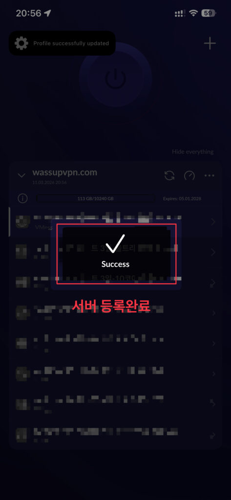 축하합니다. 왓썹VPN서버에 접속 성공하셨습니다.