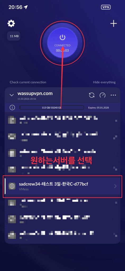 출력된 서버중 한국 서버를 선택하세요